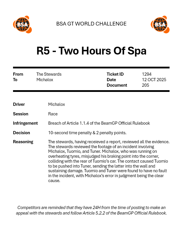 | 2025-11-12 | SC | 24 S3 W2 AGT (Race) | P1 |