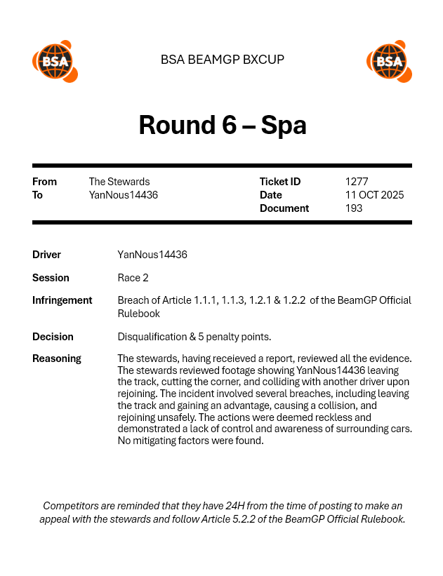 | 2026-01-31 | OW | 26 S1 W5 BeamGP Formula 4 Europe (Race 2) | P7 |