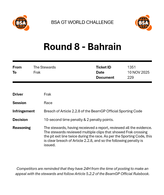 | 2025-11-13 | SC | 25 S4 W10 GT World Challenge (Qualifying) | P7 |