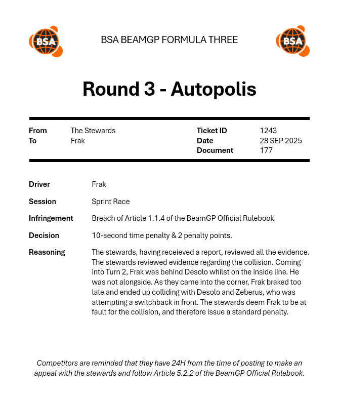 | 2025-09-27 | OW | 25 S4 W4 Formula 3 World Championship (Grand Prix) | P2 |