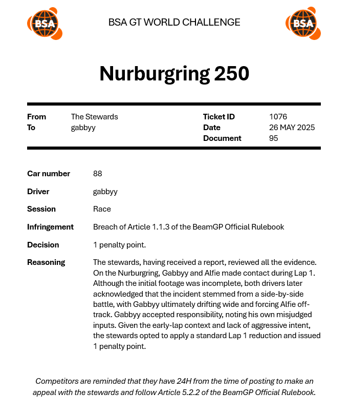 | 2025-12-13 | SC | 25 S5 W1 BeamGP GT Winter Series (Race) | P3 |