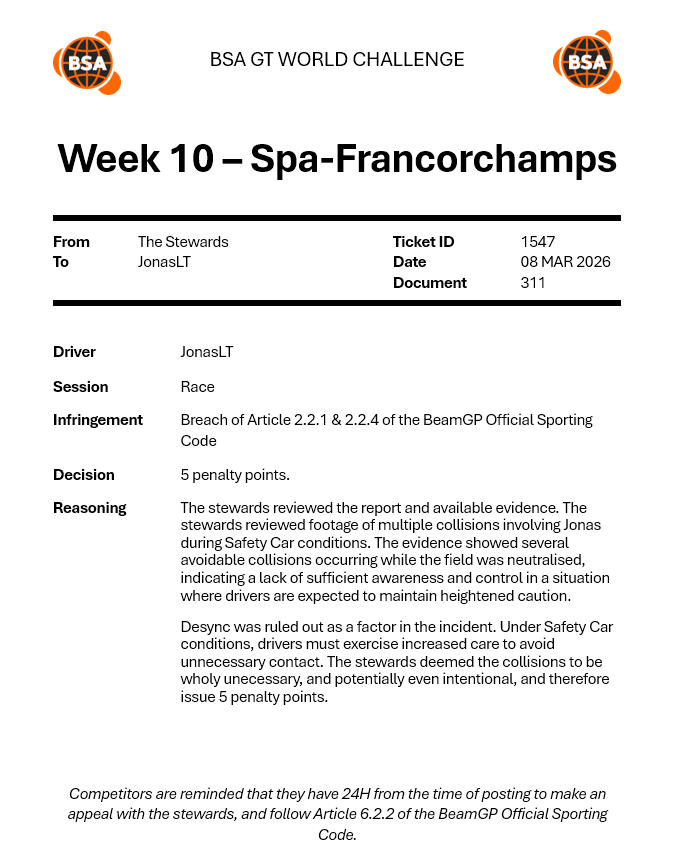 Breach of Article 2.2.4 under Safety Car conditions // 4 penalty points