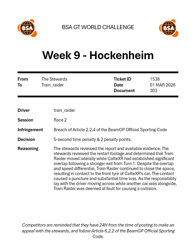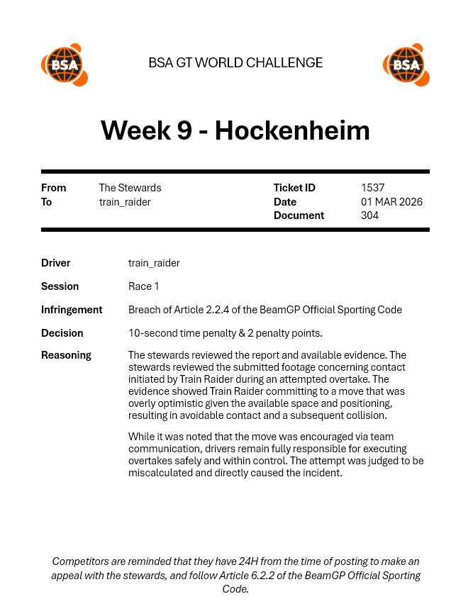 | 2026-02-28 | SC | 26 S1 W9 GT World Challenge (Sprint 1) | P3 |